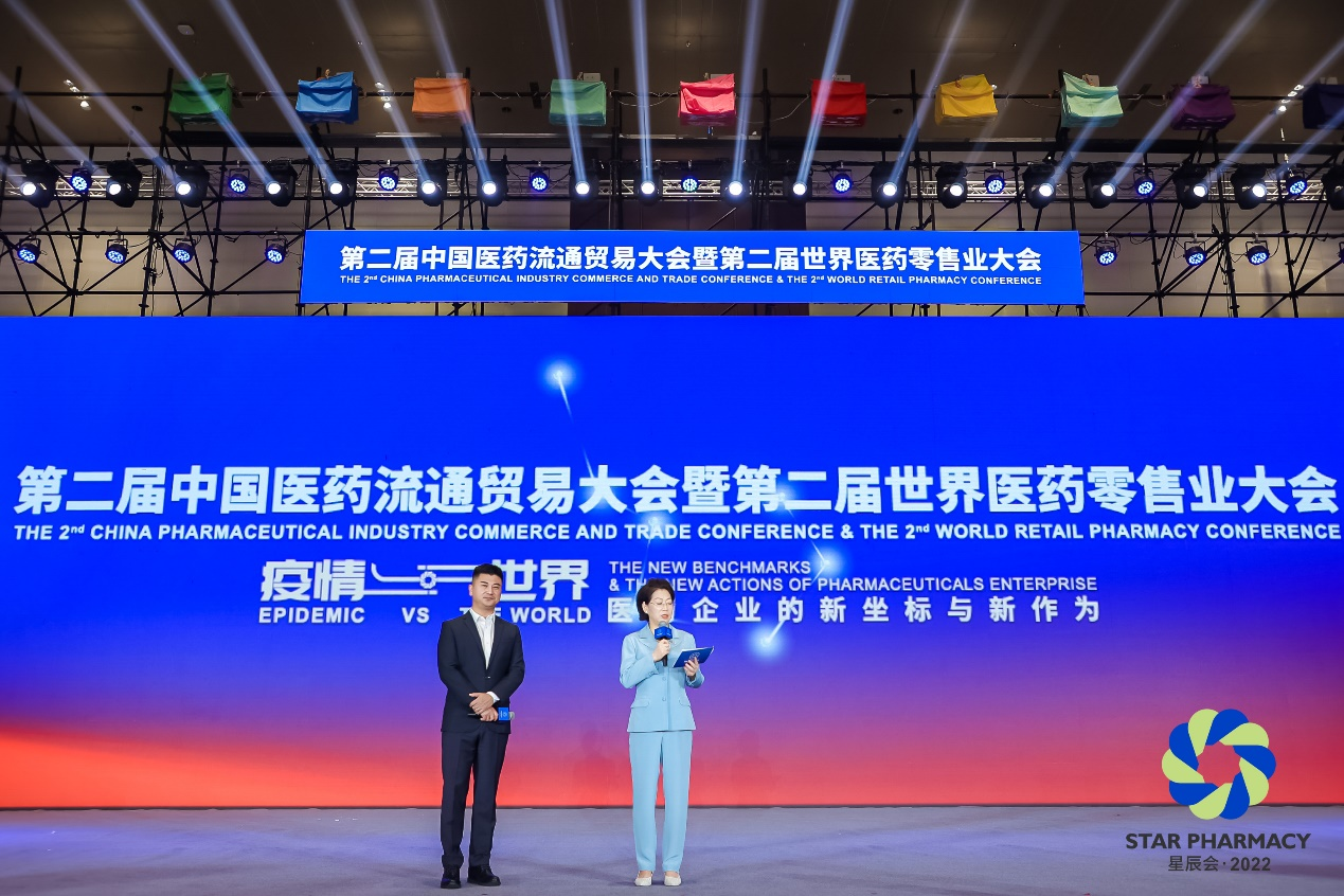 9月8日上午,由长沙市人民政府、中国医药物资协会共同主办的2022年第二届中国医药流通贸易大会暨第二届世界医药零售业大会(第二届星辰会)在星城长沙隆重开幕。尊龙药业集团董事长刘景萍受邀担任大会主持人并荣获“医药工业领军人物”称号。